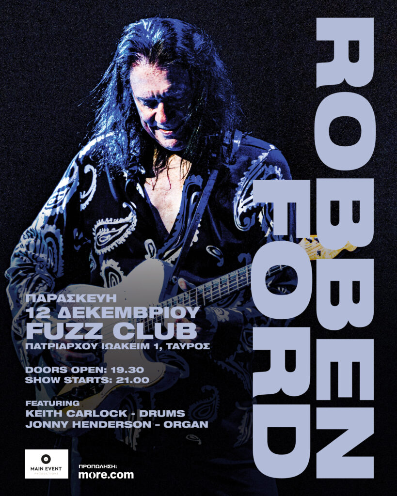 Somehow this unique and special blend of jazz and blues that characterizes Robben Ford’s playing came about. From his first day of contact with music, to this day Robben Ford has never stopped playing, composing and experimenting. The Greek audience will have the opportunity to enjoy him for the first time together with Jonny Henderson on Hammond and Evan Jenkins on drums on Friday, December 8th at Fuzz Club.
